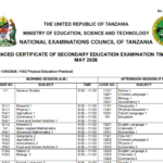 (Kumbuka: Huu ni muhtasari wa mpangilio wa kawaida wa NECTA, angalia PDF rasmi kwa saa na tarehe sahihi.)