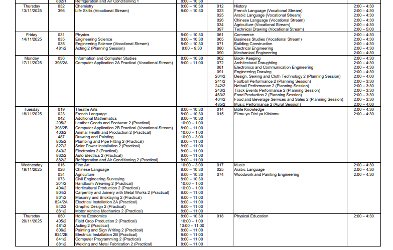 - Ratiba Ya Mtihani Wa Kidato cha nne 2025 NECTA Form Four