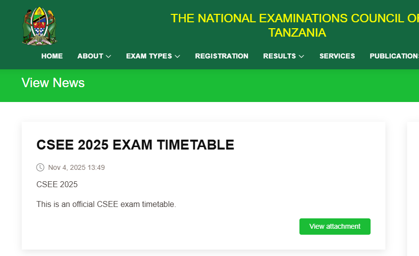 Ratiba Ya Mtihani Wa Kidato cha nne 2025 NECTA Form Four CSEE 2025 EXAM TIMETABLE PDF unaweza ku Download kwenye Website na page zetu hapa ratiba ya csee 2025, ratiba ya necta form four 2025/2026 ratiba ya mtihani necta form four.
