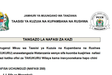 Ajira TAKUKURU 2026: Nafasi 250 za Afisa Uchunguzi na Msaidizi – Sifa, Vigezo na Jinsi ya Kuomba