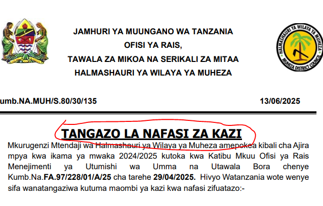 Nafasi Za Kazi Halmashauri Ya Wilaya Ya Muheza Juni, 2025